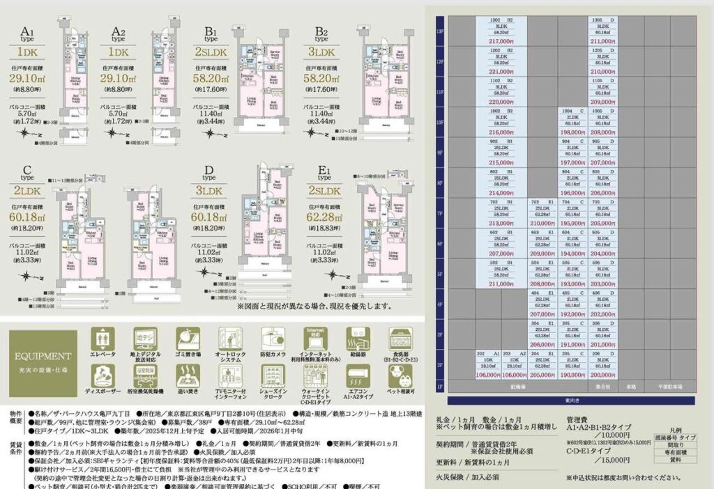 11月8日から内覧開始した押上の新築物件です。ほとんどの住戸が申し込みが入っていますが、週明けにはいくつか再募集になる住戸がある気もします。全部屋南西向きです。1DKは洋室収納が小さいけど広さがあるBにするのか、トイレが完全に独立しているなどの点から少し狭さは感じるけどDにするのか悩む人も少なくないかもしれません。1Kは7.4畳表記ではありますが、L字洋室なので長方形の同じ7.4畳と比較すると狭さを感じるかもしれません。店舗部分はまだ募集をしていません。構造上飲食(重飲食)も可能な店舗のようです。居住用の後の話になるようなので、内装工事とかで音が出る期間もありそうですね。