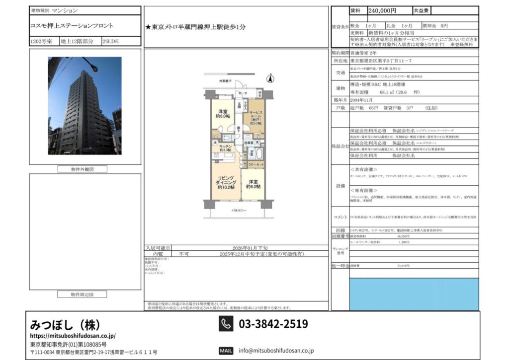 2月中旬入居予定です。退去前申し込みは先行申し込みが可能です。東向島の1駅前の曳舟駅は半蔵門線乗り入れ駅です。半蔵門沿線沿い通勤の人にもおすすめです。